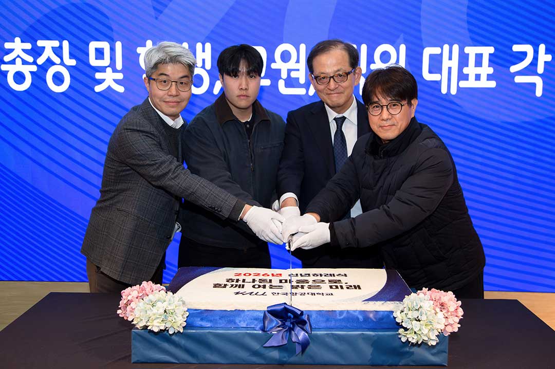 Following the New Year’s address, the ceremony continued with the introduction of senior administrators and a cake-cutting ceremony attended by the president and representatives of faculty, staff, and students, symbolizing unity and a hopeful start to the new year. After the event, commemorative rice cakes and gifts were distributed to attendees, and free tteokguk (rice cake soup) was served at the campus cafeteria during lunchtime, allowing all members to share in the spirit of the new year.